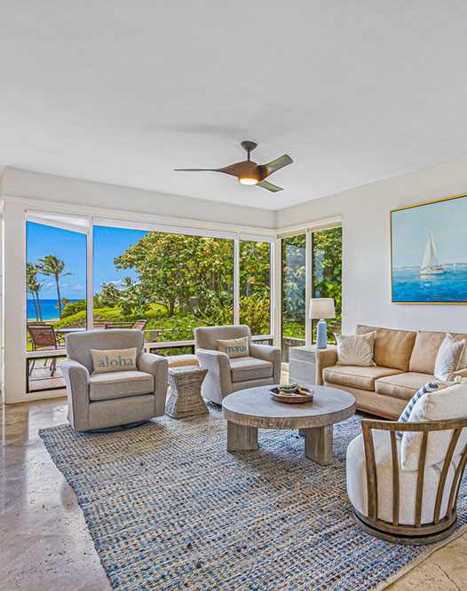 Immerse yourself in the natural beauty of Kapalua Bay Villas 12G4, a meticulously remodeled 1-bedroom, 1-bathroom ocean-view retreat that embodies coastal sophistication. Reimagined in 2021, this spacious single-level residence offers seamless indoor-outdoor living with direct access to the lush, manicured lawns that lead to the soft white sands of Oneloa Bay. Professionally designed in a coastal contemporary style, the villa is offered fully turnkey, featuring elegant granite countertops, stainless steel appliances, and timeless travertine flooring. Expansive windows invite abundant natural light and frame breathtaking ocean vistas, creating a sense of openness and connection to the surrounding landscape. Step onto your private lanai to breathe in the fresh Pacific breeze, watch whales breach across the horizon, and take in the captivating sunset views with Molokai in the distance. With over 1,000 square feet of refined interior living space and a large partially covered lanai, this residence offers both comfort and sophistication in equal measure. Nestled within the gated Kapalua Bay Villas community, this oceanfront retreat provides a peaceful sanctuary—where the beauty of Maui’s coastline unfolds just beyond your door, removed from the bustle of the resort scene. The Montage Spa, Plantation Course Course, pickle ball and many world-class restaurants are short distance away.